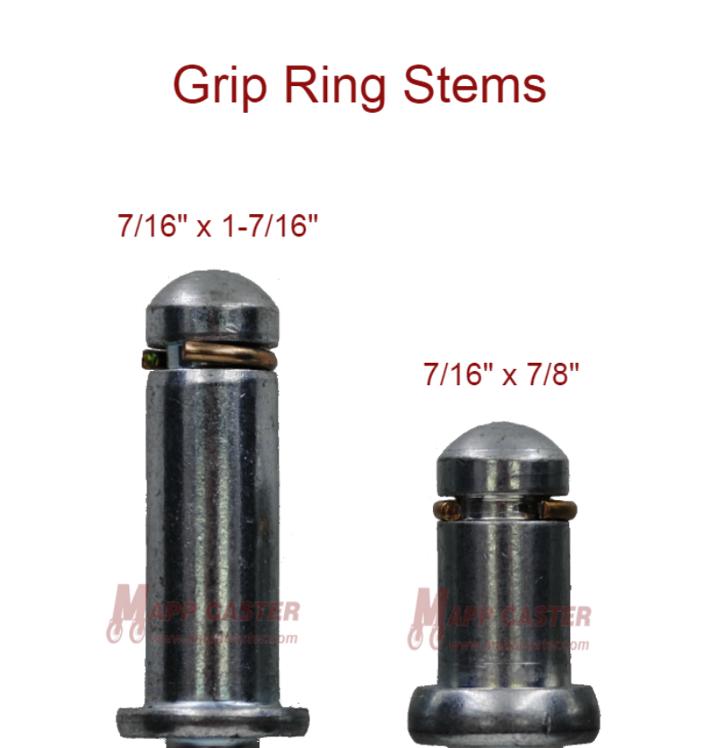 This furniture caster has several mounting stem options to choose from. The selected stem will come installed unless requested otherwise. Matching adapters and inserts for these mounting stems can be found here - Adapters & Inserts