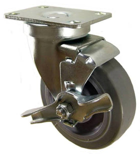 Thermoplastic Rubber Wheels combine the advantages of both a hard & soft tread material in a single wheel, making it one of our favorite caster wheels. Like a hard tread wheel, thermoplastic rubber rolls easily and is very durable. Like a soft tread wheel, it is quiet, protects floors, and has a cushioned ride. These caster wheels also hold up well when exposed to weather, are resistant to chemicals, water, & steam, and reject floor debris like metal shavings.