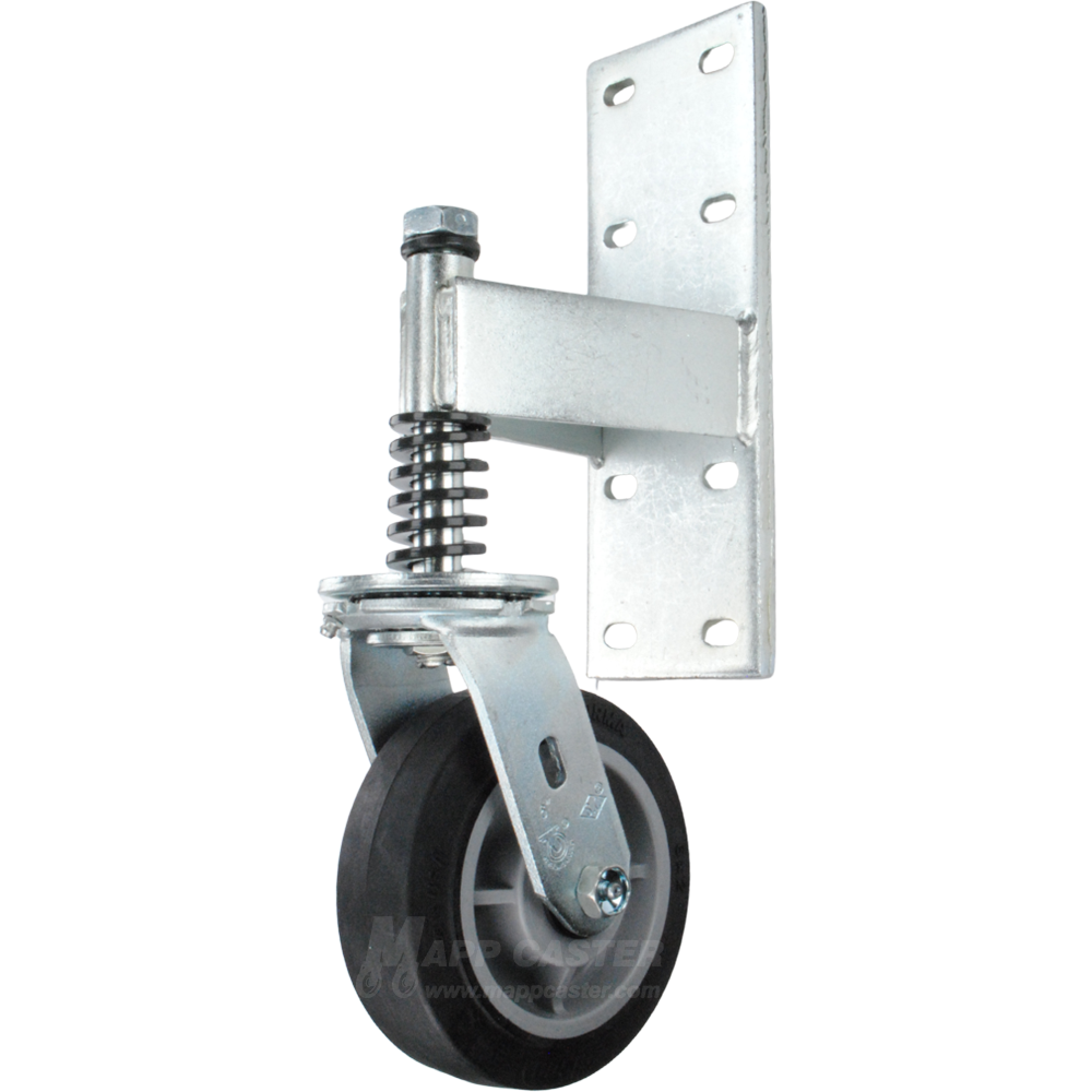 Heavy Duty Spring Loaded Gate Caster Bracket with Thermplastic Rubber Wheel - 500 lbs. Capcity