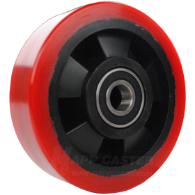 These steering pallet jack wheels are located at the back of of the pallet jack where the handle is. This heavy-duty nylon pallet jack wheel is designed to avoid the de-treading issues often seen with polyurethane on steel wheels. Nylon wheels are non-marking, but it's worth noting that trapped dirt beneath the wheel may scratch nicer floors.