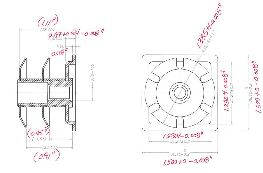 This threaded adapter insert allows you to attach a caster or foot/glide to the bottom of square tubing, commonly used in tables & shelving. It fits flush when installed & is designed for 1-1/2" square tubing, measured across the outside from one side to the other.