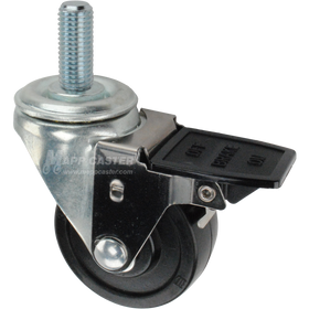3" x 1-1/4" Soft Rubber Ball Bearing Wheel Swivel Caster w/ Face Contact Brake, 3/4"-10 x 1-3/4" Threaded Stem - 175 lbs Capacity