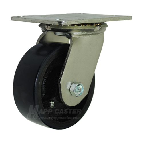 5" x 2" Polyurethane on Iron Wheel Swivel Caster, 4-1/2" x 6-1/4" Plate - 1,300 Lbs Capacity